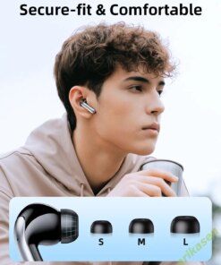 Arikasen true wireless earbuds headphones have oversized 13mm drivers that powerful bass, clear midrange, and bright treble for a truly immersive music experience, making them an ideal choice for music enthusiasts. The built-in microphones will precisely pick up your voice, ensuring clear and realistic sound during calls. They come with 3 pairs of silicone ear tips(S/M/L), so you can find the best fit for your ears and own your uniqueness with sound. The bud design gently seals your ears, blocking surrounding noise effectively and enhancing the bass performance.